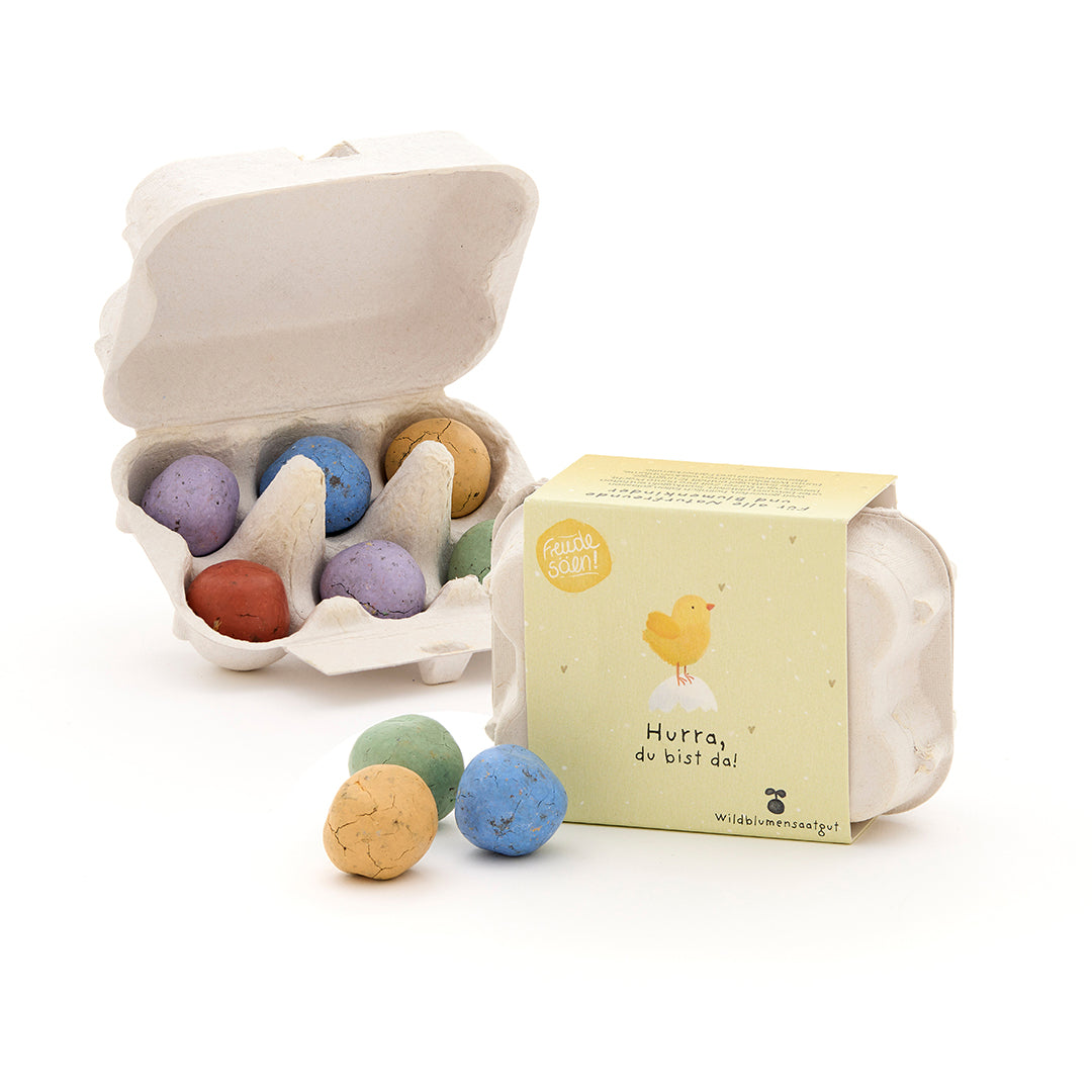 Ein neues Leben ist da – und das wird gefeiert! Mit diesen 6 bunten Blumenmurmeln im Mini-Eierkarton verschenkst du wachsendes Babyglück. Die Aufschrift „Hurra, du bist da“ macht die Murmeln zu einem liebevollen Symbol für Freude, Wachstum und neue Anfänge.