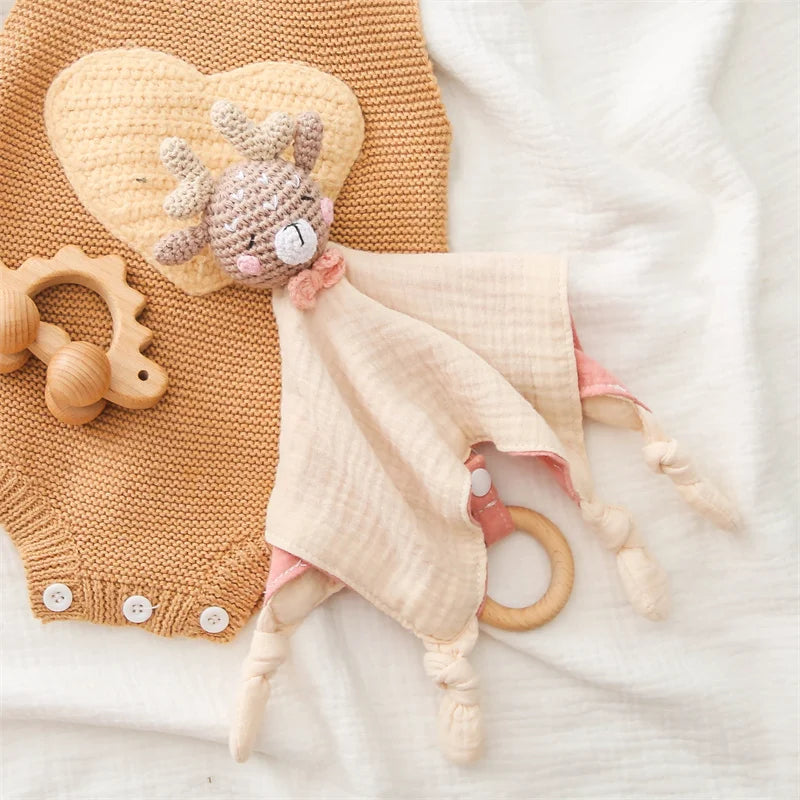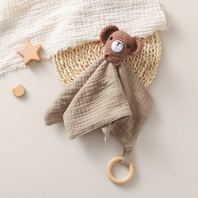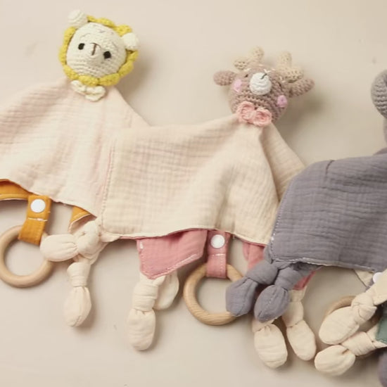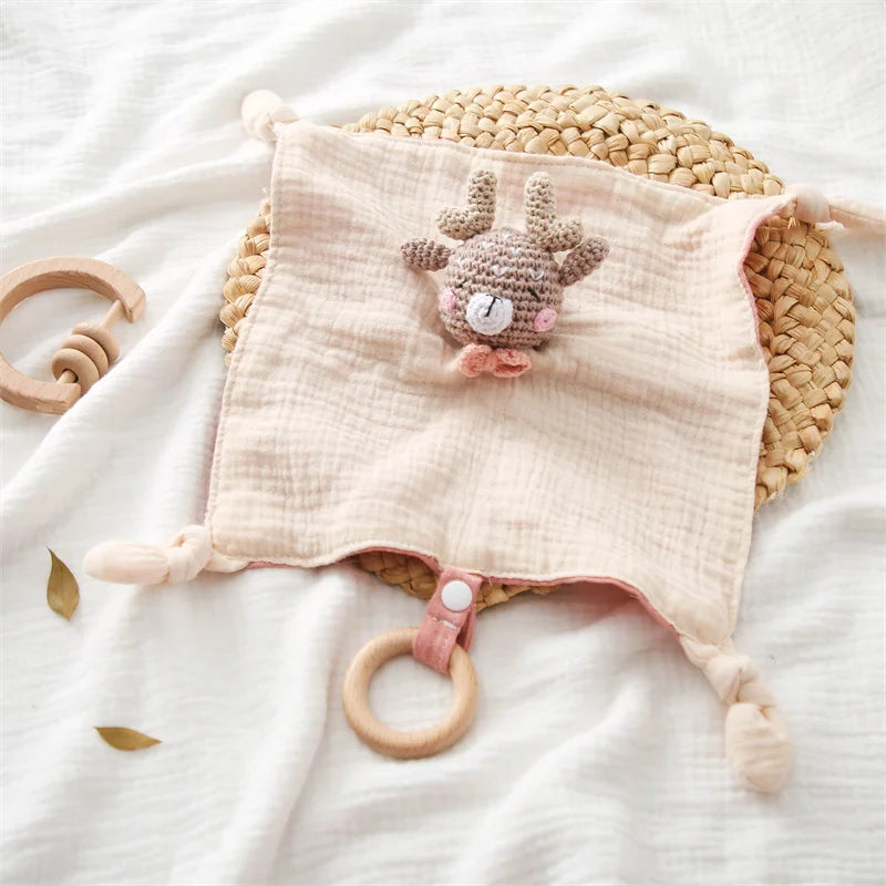 Die gehäkelten Tiere sind farbenfroh und haben verschiedene Texturen, die die Entwicklung deines Babys fördern. Dein Baby kann das weiche Tuch streicheln und erkunden, während es gleichzeitig Komfort und Geborgenheit bietet.