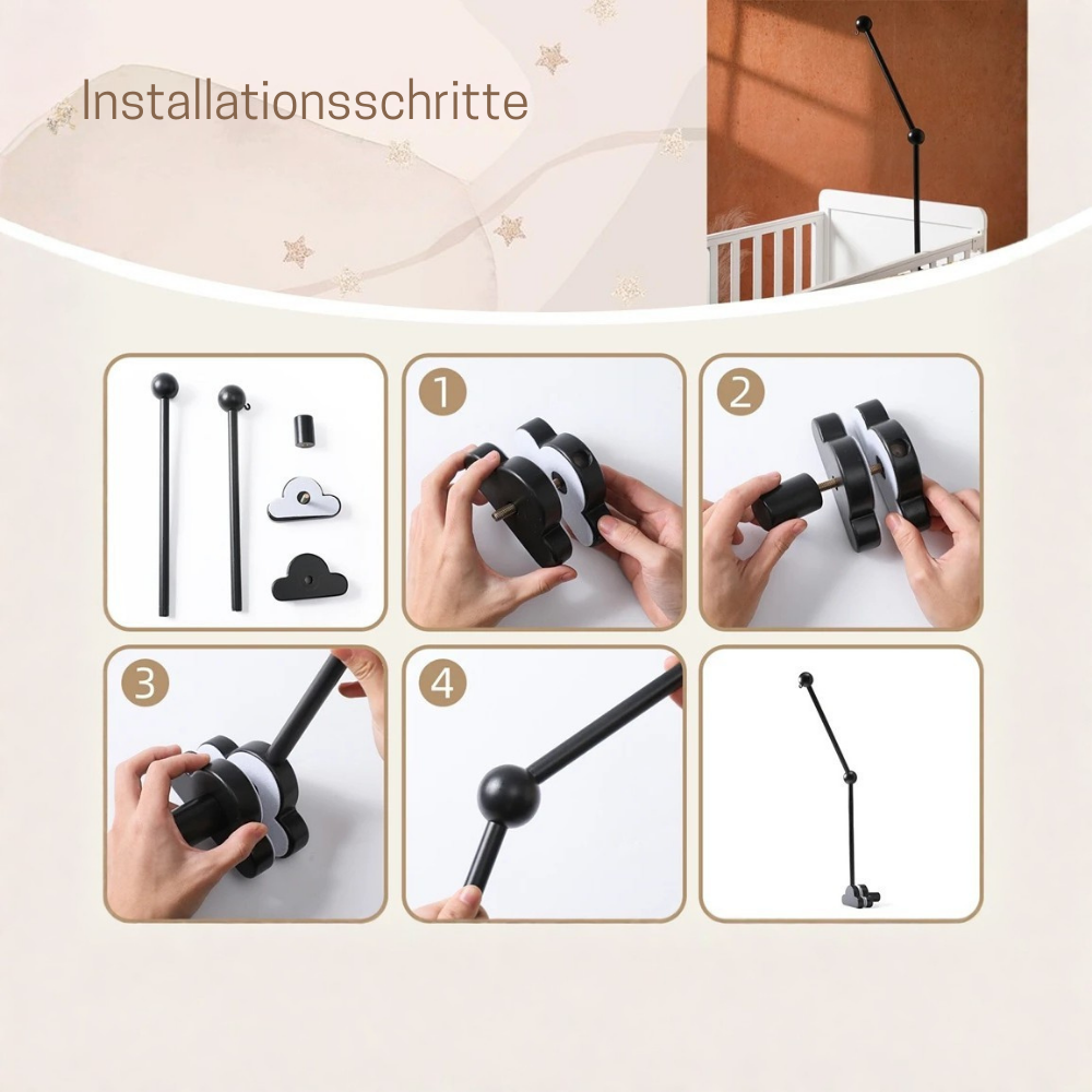 Bitte beachte: Dieses Produkt umfasst nur die Halterung. Passende Mobiles und Musikboxen findest du ebenfalls in unserem Shop. 💛