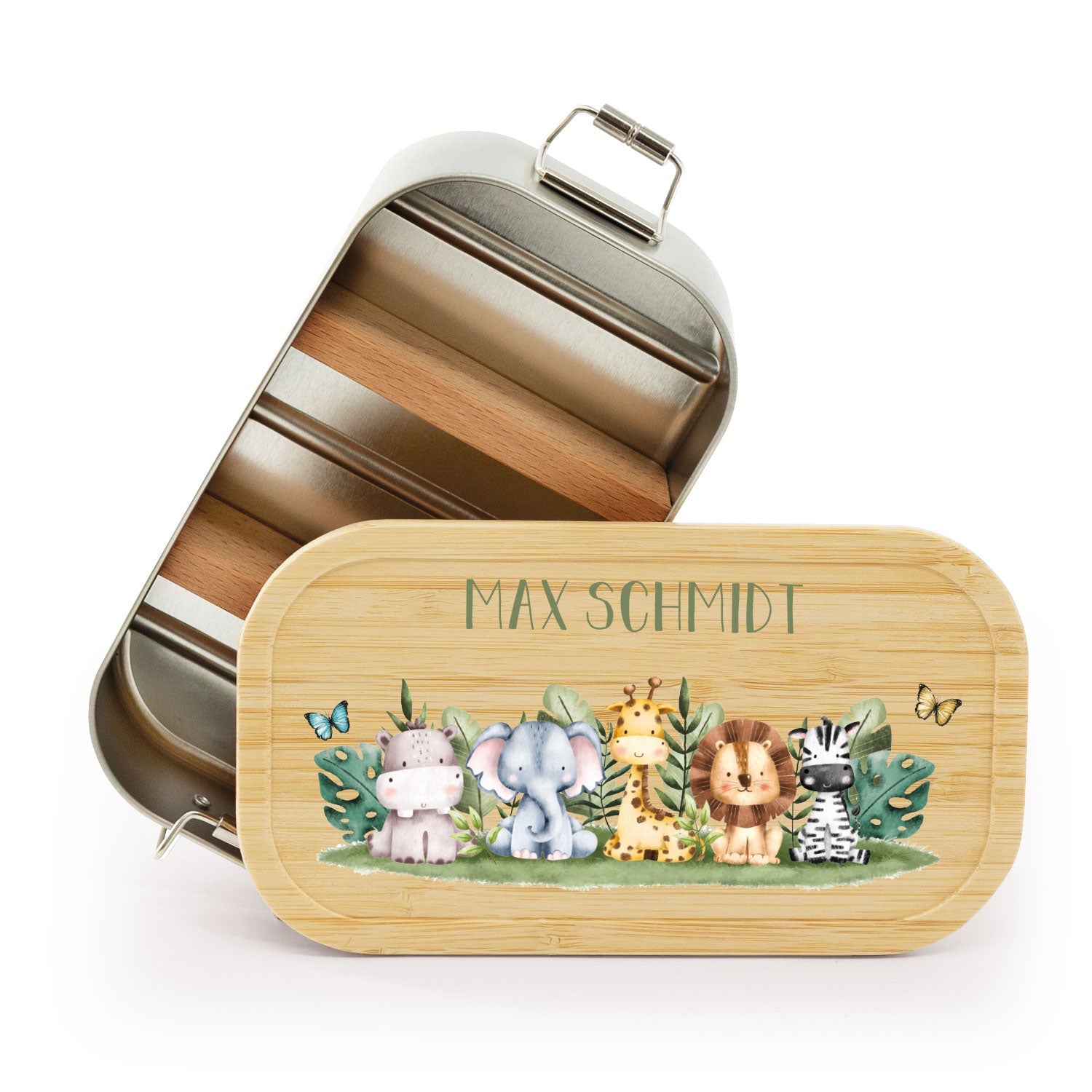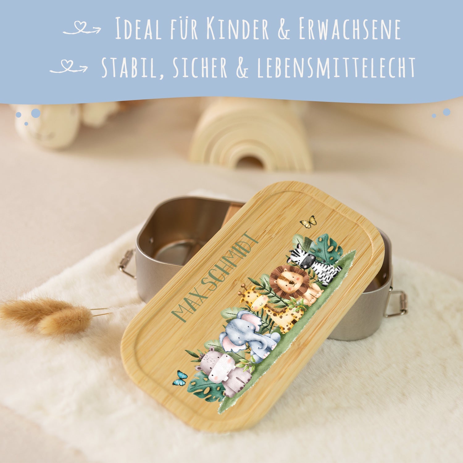 Brotdose mit Deckel für Kinder mit UV-Druck im "Tiergruppe Safari" Design