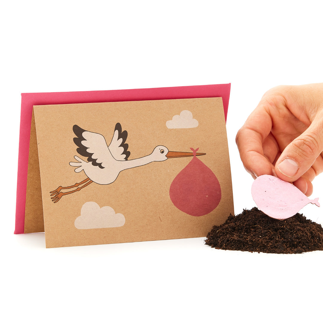 KidzzCamp Pflanzkarte Geburtskarte "Storch rosa"
