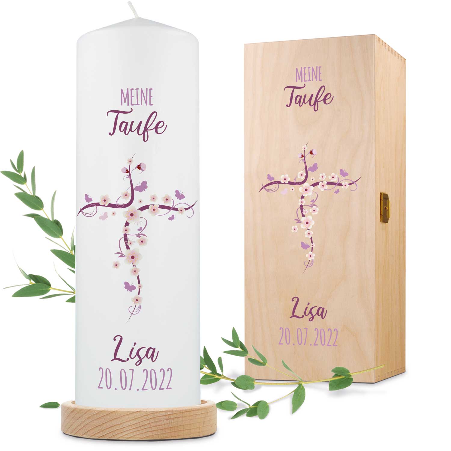 - Unsere Tauf-Kerze lässt sich mit Namen und Datum personalisieren