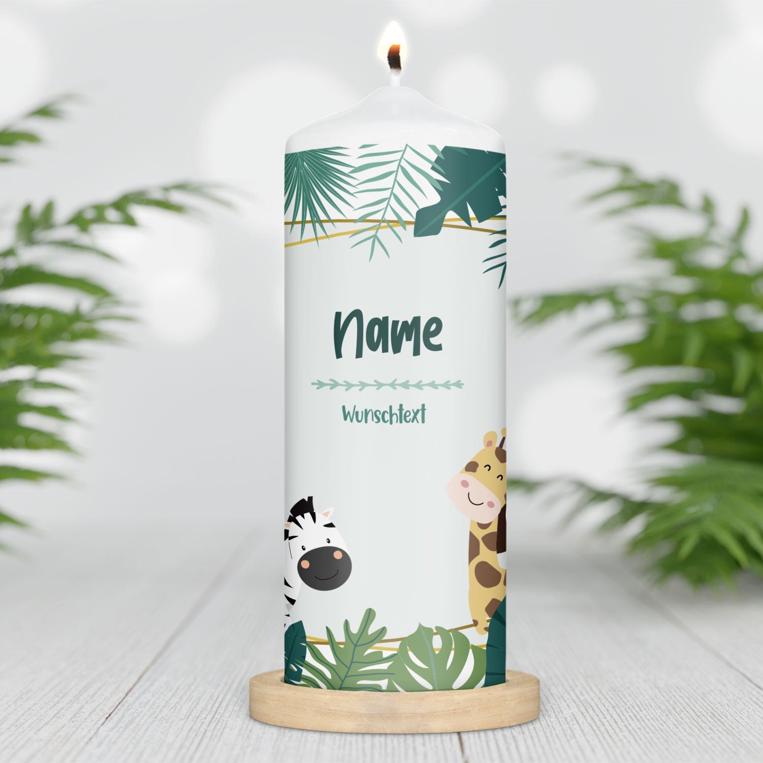 Große Kerze "Dschungel" mit Name & Wunschtext für Kinder