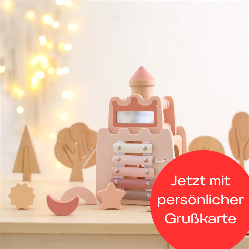 KidzzCamp Motorikwürfel Schloss mit einer individuellen Grußkarte und schnellem Versand.