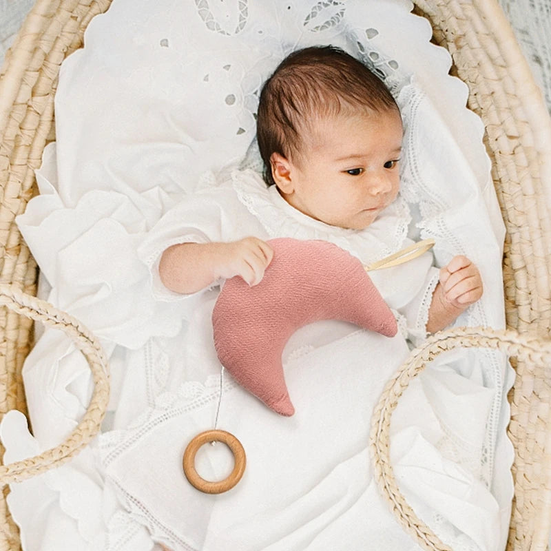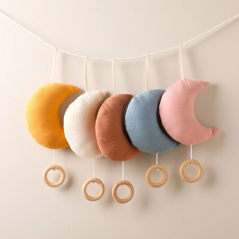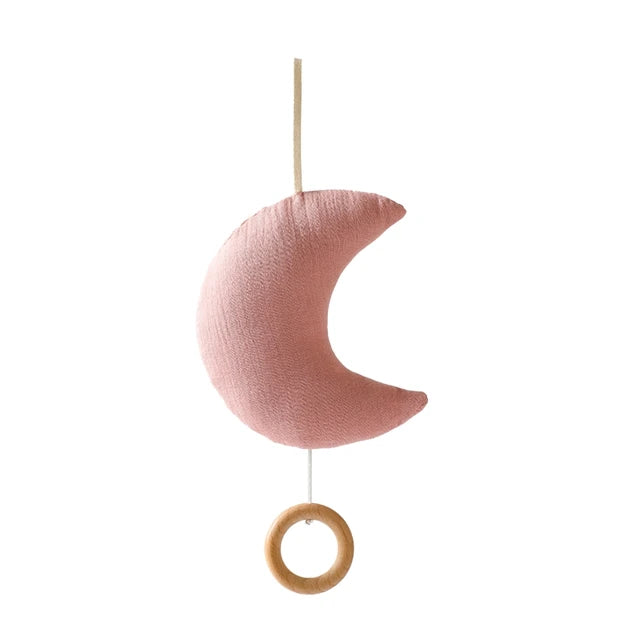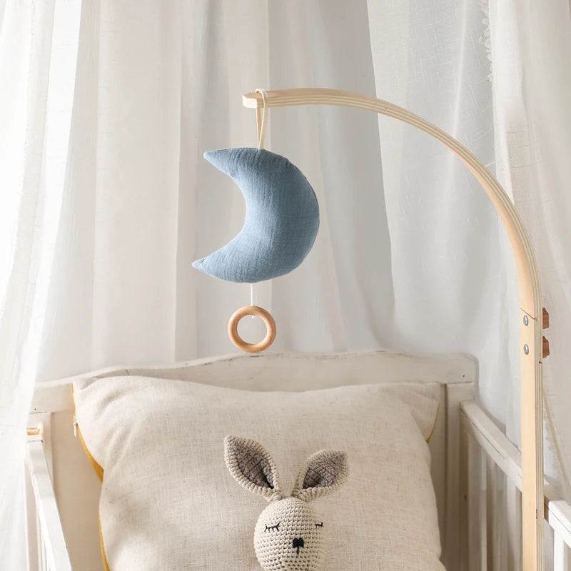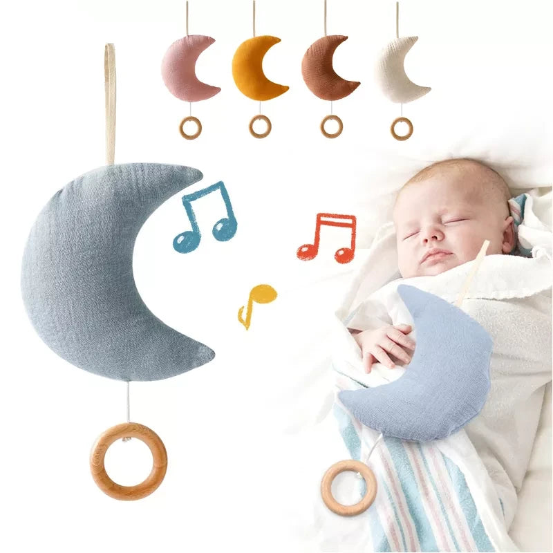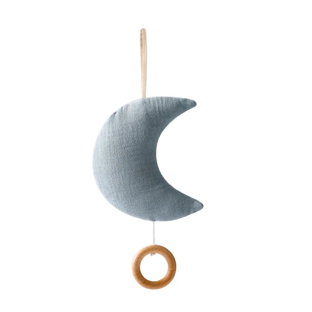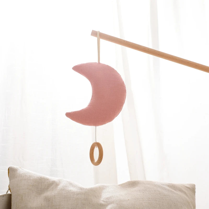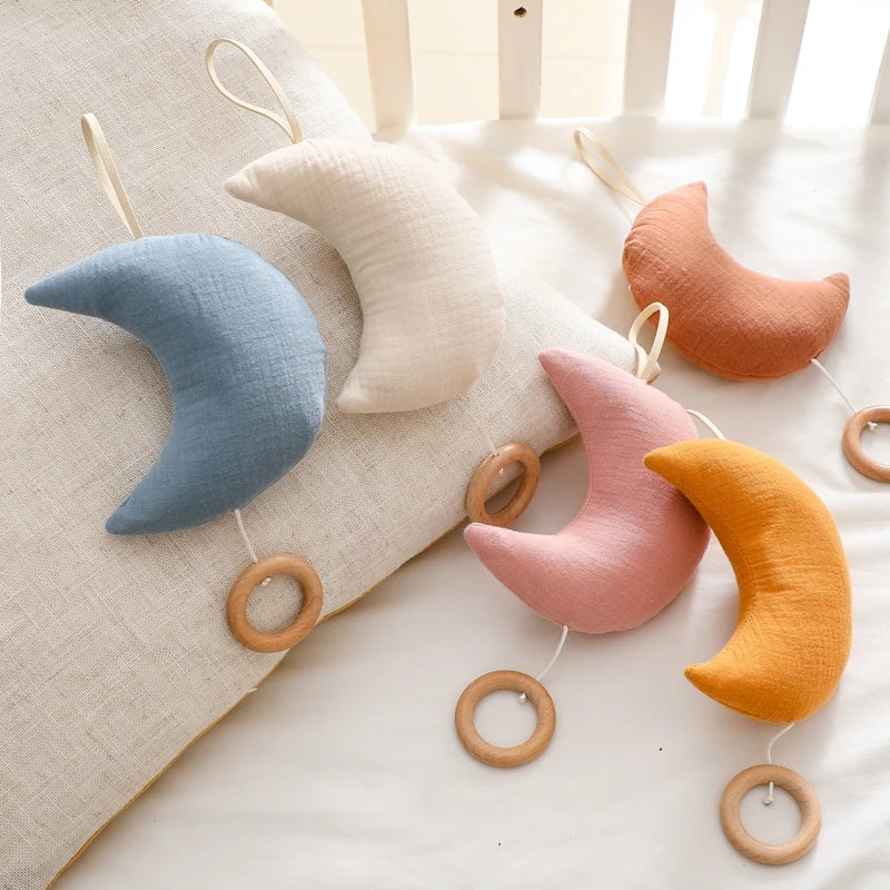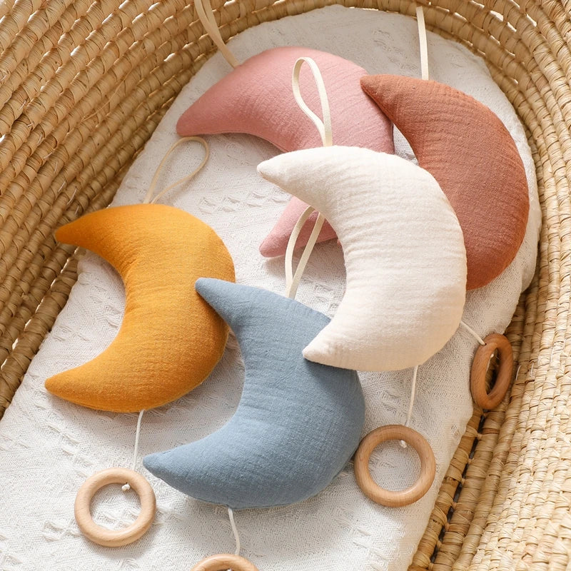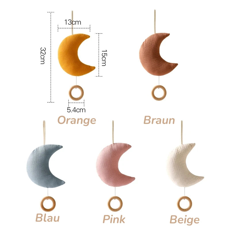 Diese wunderschöne 🌙 Spieluhr in Form eines Mondes aus 100% Bio-Baumwoll-Musselin ist ein absoluter Blickfang. Wähle aus fünf verschiedenen Farben deine Lieblingsvariante aus.