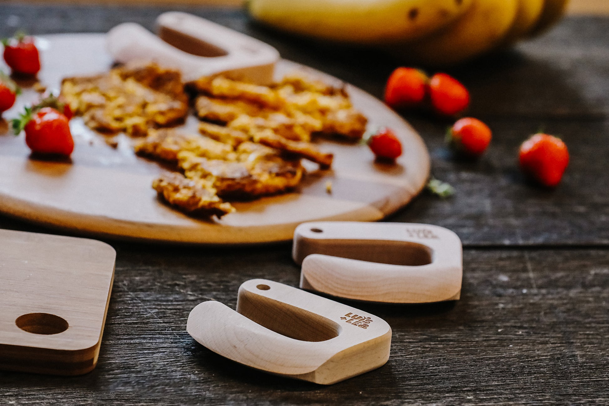 Basierend auf Kundenfeedback haben wir das Design und die Funktion des Kleinteilers im Sommer 2023 überarbeitet. Die komplett runde Klinge und die schärfere Schneidekante des Kleinteilers 3.0 ermöglichen einen optimalen Druckpunkt und machen es noch einfacher, das Messer als Wiegemesser zu verwenden. Dadurch wird das Schneiden für das Kind erleichtert und führt zu mehr Erfolg und Spaß beim Kochen. 🙌✨🔪