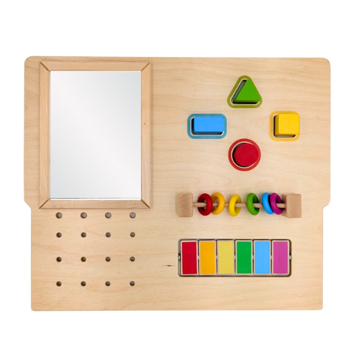 Mit Elementen wie Spiegel, Ringen, Drehscheiben und beweglichen Wurfteilen können Kinder ihre Umwelt erkunden, experimentieren und sich kreativ entfalten. Gefertigt aus hochwertigen, nachhaltigen Materialien, ist die Motorikplatte stabil, sicher und langlebig.