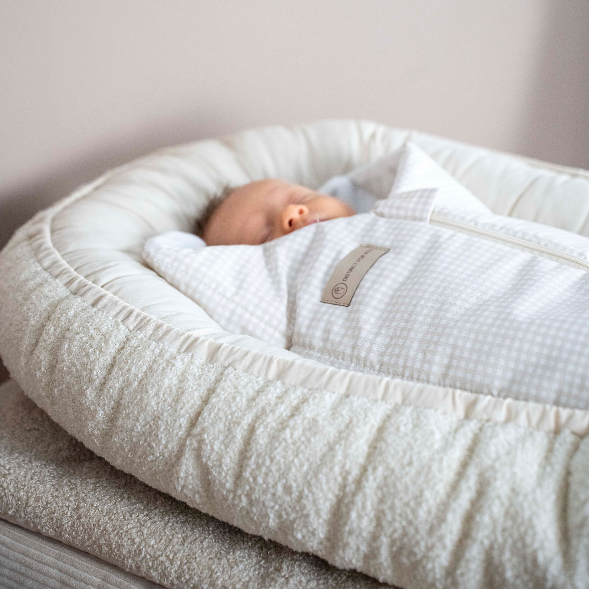 Unser Pucksack aus 100 % Baumwolle im stilvollen Karo-Muster schenkt Ihrem Baby Sicherheit, Geborgenheit & natürlichen Schlafkomfort . Der atmungsaktive Stoff ist OEKO-TEX® Standard 100 (Klasse I) zertifiziert und garantiert frei von Schadstoffen – perfekt für empfindliche Babyhaut.