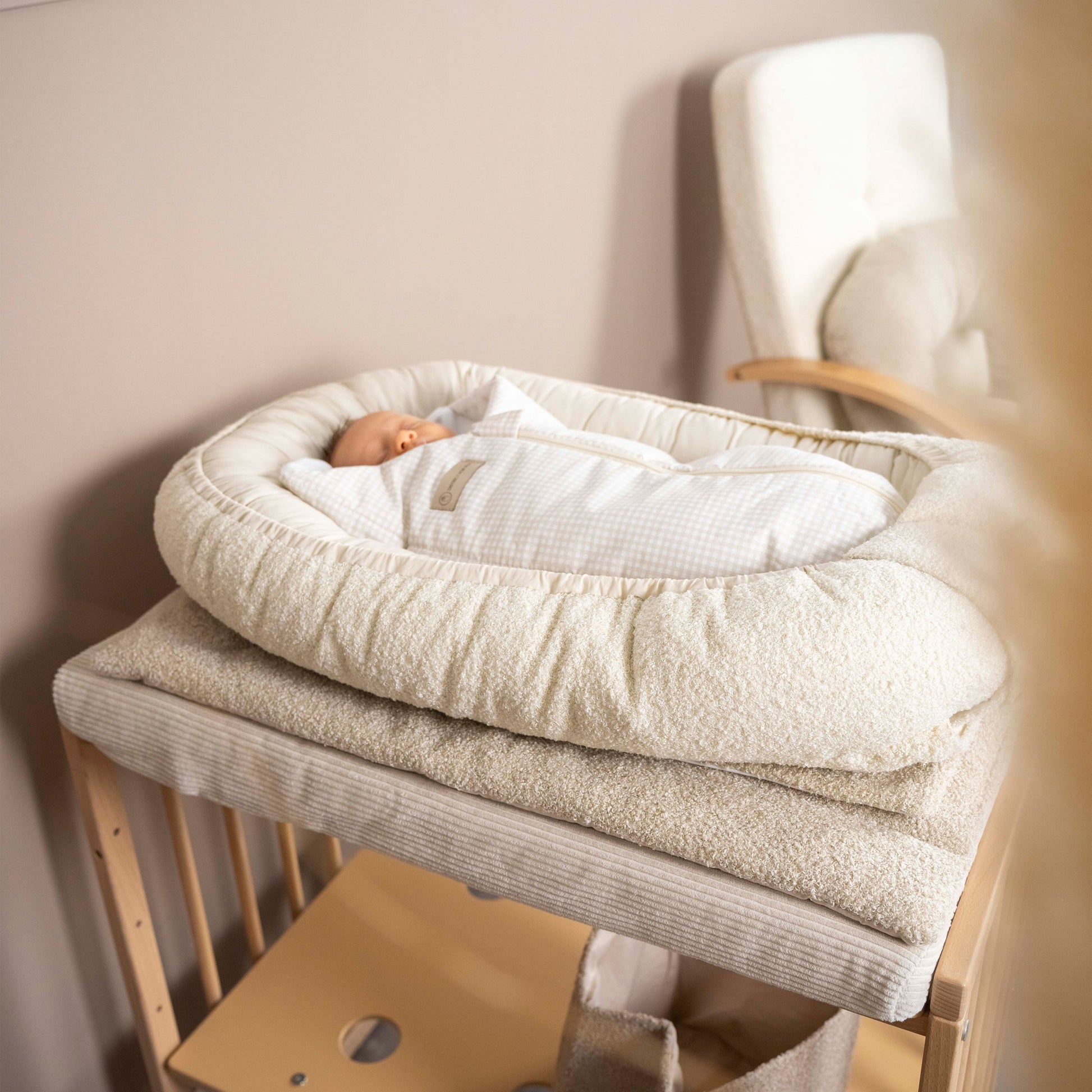 Mitwachsender Pucksack aus Baumwolle – Kariertes Design in Beige