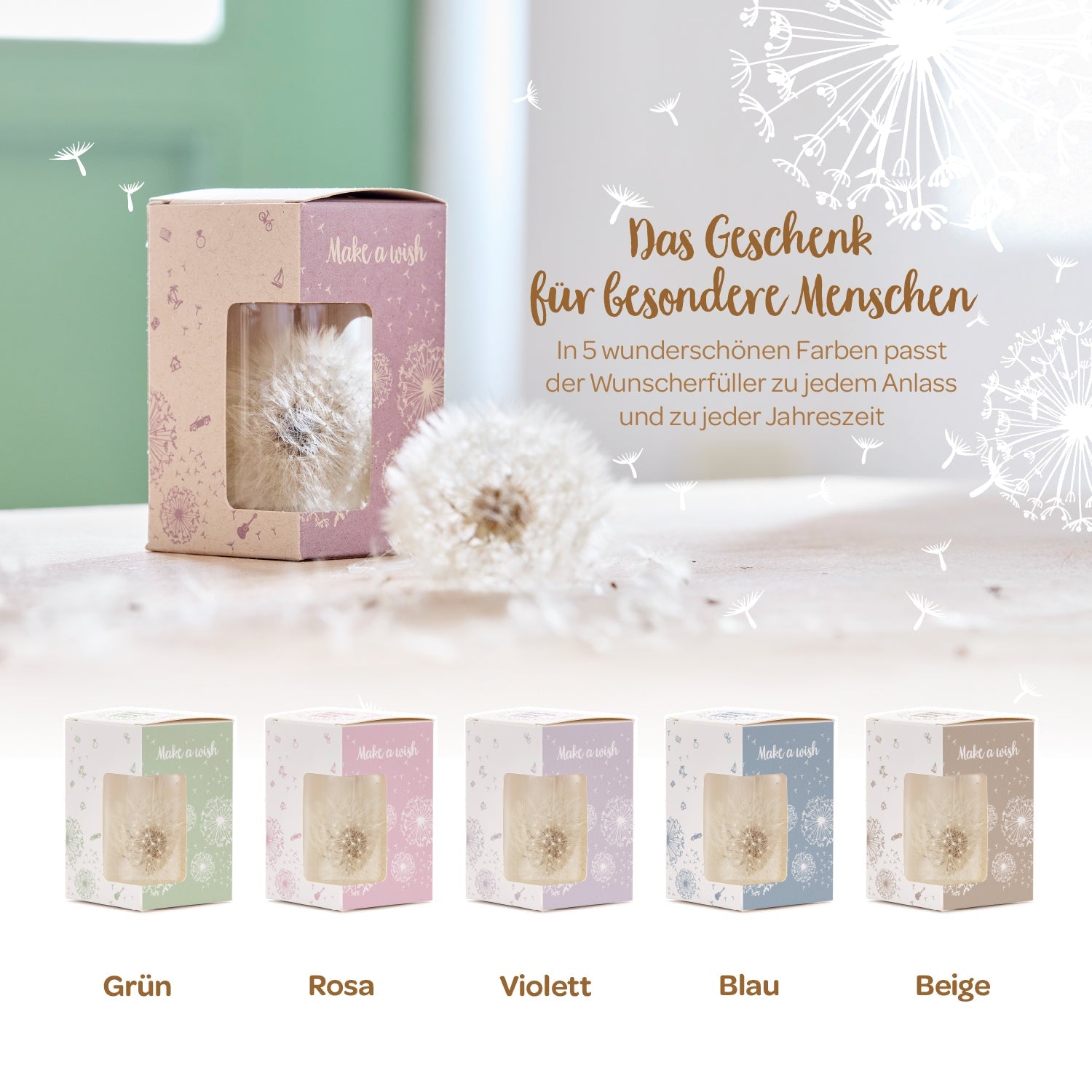 ❤️ 100% natürlich & handgemacht: Die Pusteblumen wurden für dich liebevoll von Hand gepflückt. Der Wunscherfüller wird in Deutschland handgefertigt. Er ist ewig haltbar, so dass die Wünsche für immer bleiben.